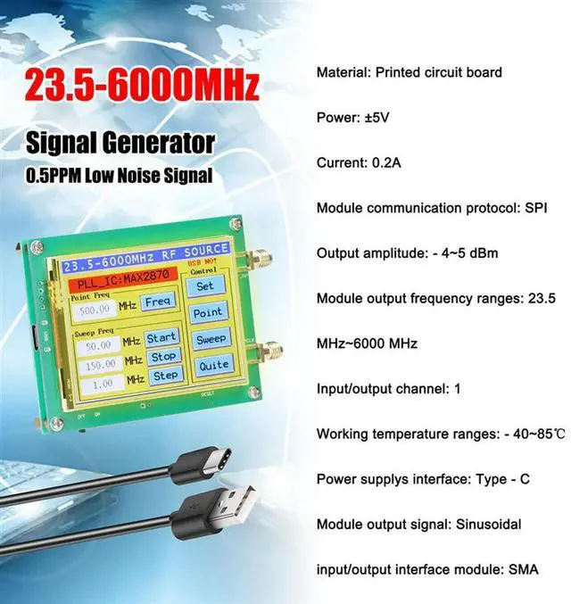 MAX2870 23.5-6000Mhz 0.5PPM Low Noise Signal Generator Video Signal Generator Touchable Screen PC Software Control PLL
