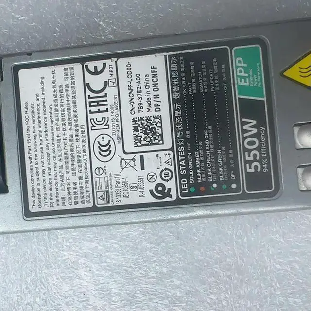 • R430 330 R440 340 Hot Plug 550W Power Supply X185V 6V43G 034X1 NCNFF D550E-S1 L550E-S1