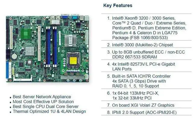 • For 775 Single-way Server Motherboard Four-port Network Card Support Xeon 3200 / 3000 Series PDSMI-LN4+