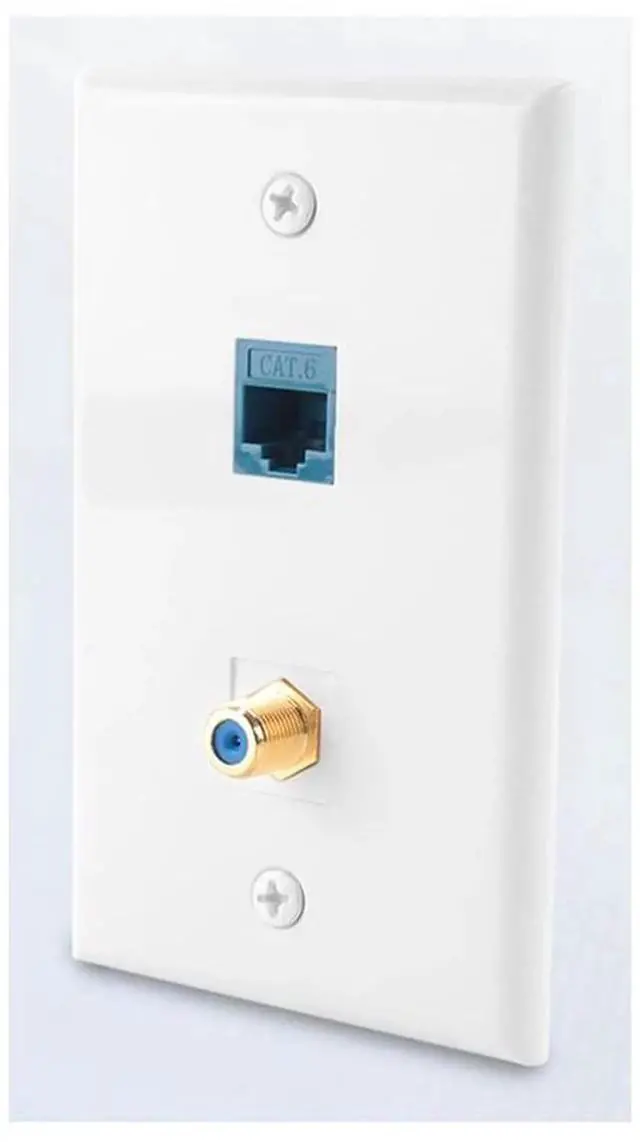 4 Pack Ethernet Coax Wall Plate Jack with 1 6S Port and 1 Gold Plated Coax F-Type Port RJ45 Wall Plate