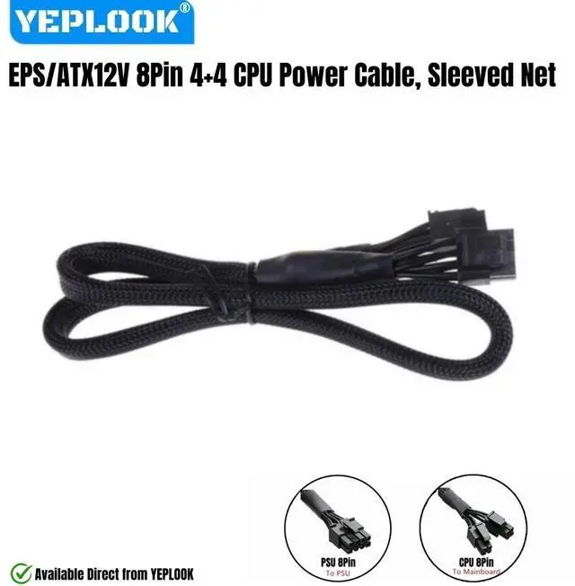 YEPLOOK 8Pin 4+4Pin CPU Power Cable Sleeved Net for Corsair CX850M, CX750M, CX650M, CX600M, CX550M, CX500M, CX450M, CX430M Modular Power Supply Unit, 18AWG 60CM/23.62inch/1.97ft.