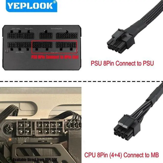 3. Not work with GPU graphics card. PSU 8Pin and CPU 8Pin 4+4Pin cannot be used interchangeably.