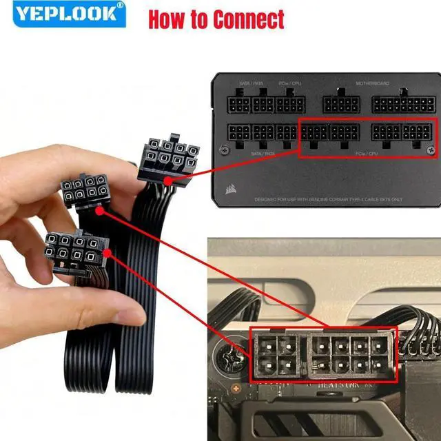 YEPLOOK Dual CPU Power Cable EPS/ATX12V 2x 8Pin 4+4 for Corsair RM1000i, RM850i, RM750i, RM650i, RM-i Series Type4 Modular Power
