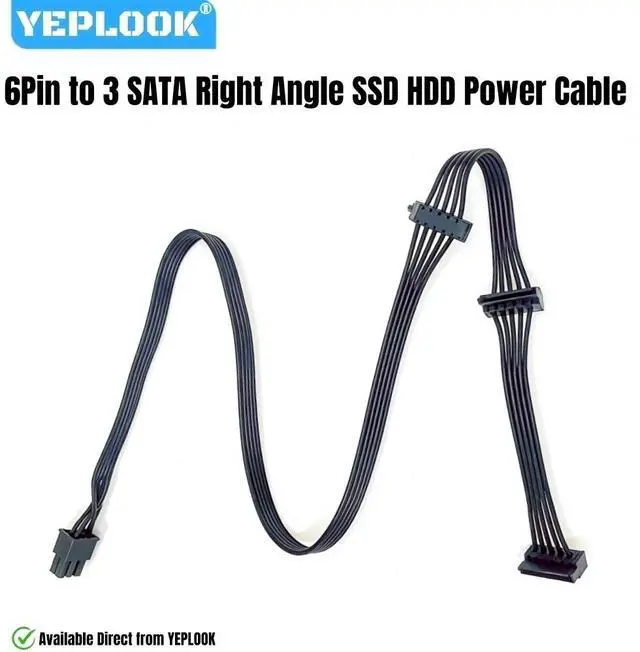 YEPLOOK 6Pin to 3x SATA Angled, SATA Power Cable for HDD SSD, for Corsair RM1000i, RM850i, RM750i, RM650i Type 4 Modular Powers, 18AWG 50+15+15CM