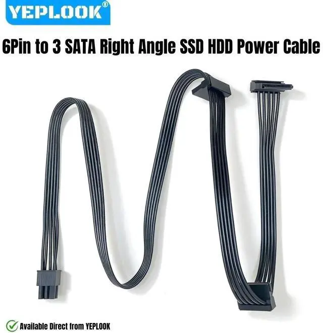 YEPLOOK 6Pin to 3x SATA Right Angle SATA Power Cable for HDD SSD Compatible with Corsair SF750, SF600, SF450 Modular Power, 18AWG 50+15+15CM