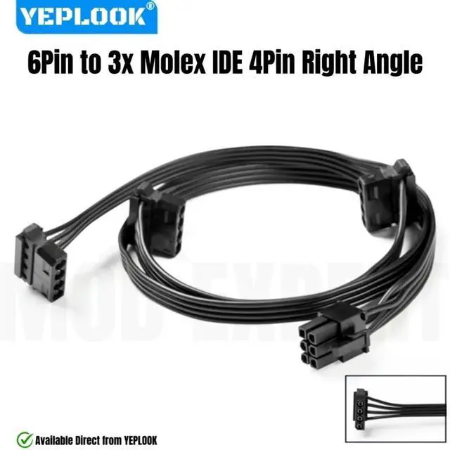 Package List: 1 Piece 6Pin to 3x Molex 4Pin Angled IDE Power Cable for Corsair RM-i Series Type 4 Modular Powers.