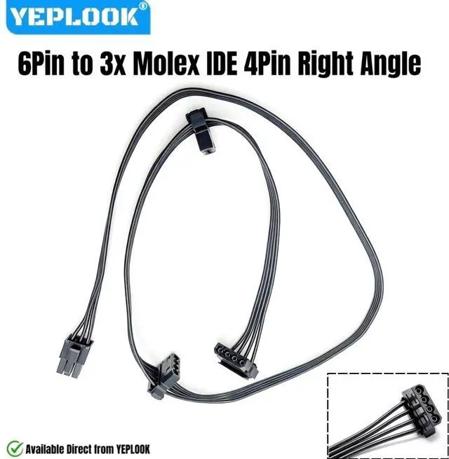Package List: 1 Piece 6Pin to 3x Molex 4Pin Angled IDE Power Cable for Corsair TX-M Type 3 Modular Powers.