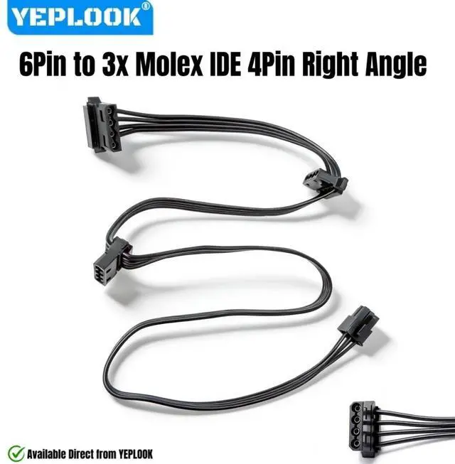 Package List: 1 Piece 6Pin to 3x Molex 4Pin Angled IDE Power Cable for Corsair RM-x Series Type 4 Modular Powers.