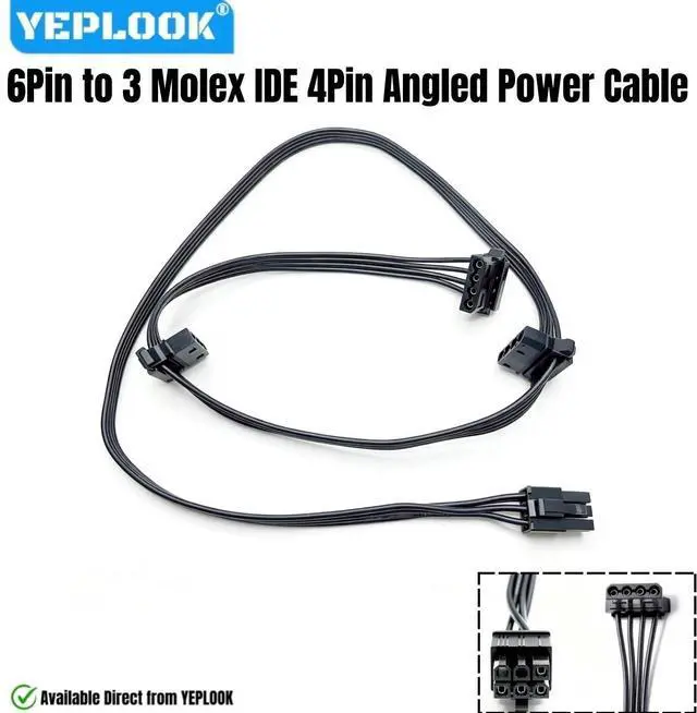 Package List: 1 Piece 6Pin to 3x Molex 4Pin Angled IDE Power Cable for Corsair AX/ AX-i series Type 3 & Type 4 Modular Powers.