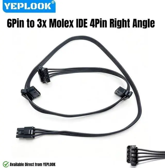 Package List: 1 Piece 6Pin to 3x Molex 4Pin Angled IDE Power Cable for Corsair SF series Type 4 Modular Powers.