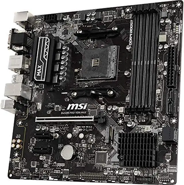 MSI ProSeries AMD Ryzen 2ND and 3rd Gen AM4 M.2 USB 3 DDR4 D-Sub DVI HDMI Micro-ATX Motherboard (B450M PRO-VDH Max)