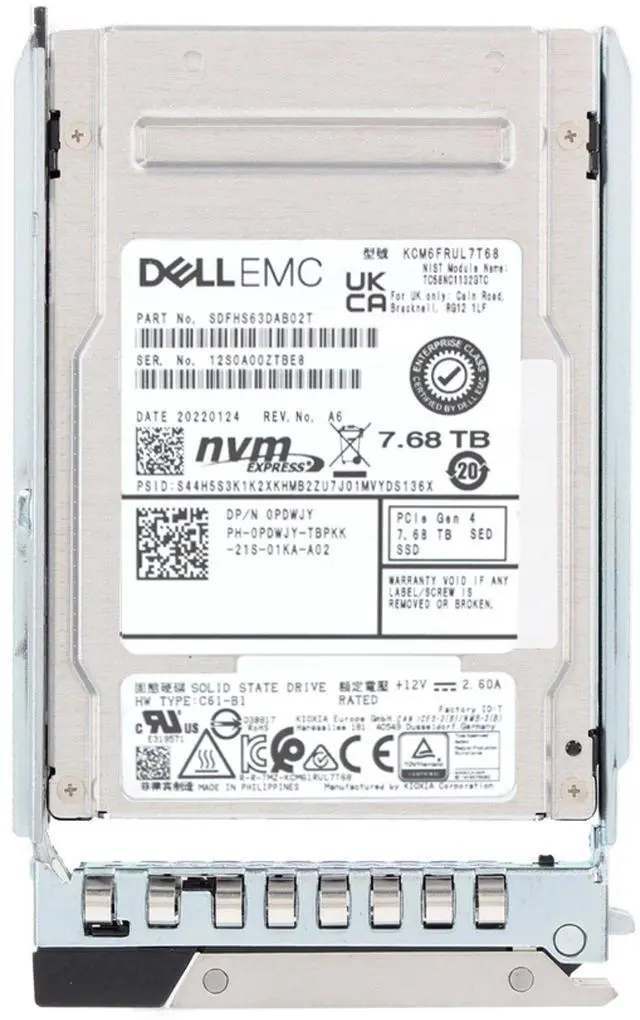 Dell 7.68TB Enterprise NVMe Gen4 RI SED FIPS TLC 2.5 SSD CM6-R (PDWJY-OSTK)