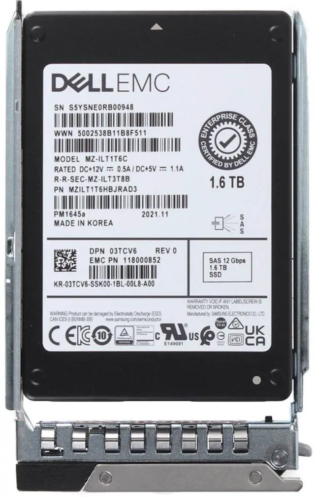 Up for sale is a Dell 1.6TB 12Gbps SAS MU TLC 2.5 SSD PM1645a (3TCV6). All components are tested and firmware is updated.