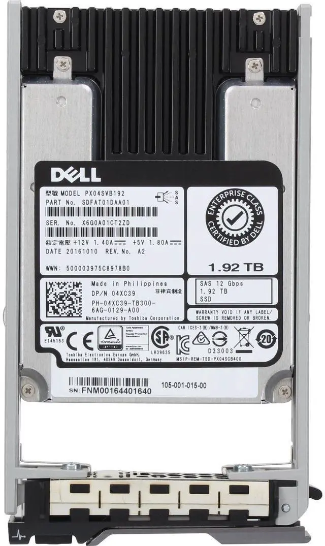 Up for sale is a Dell 1.92TB 12Gbps SAS MU MLC 2.5 SSD PX04SVB192 (4XC39-CO3). All components are tested and firmware is updated.