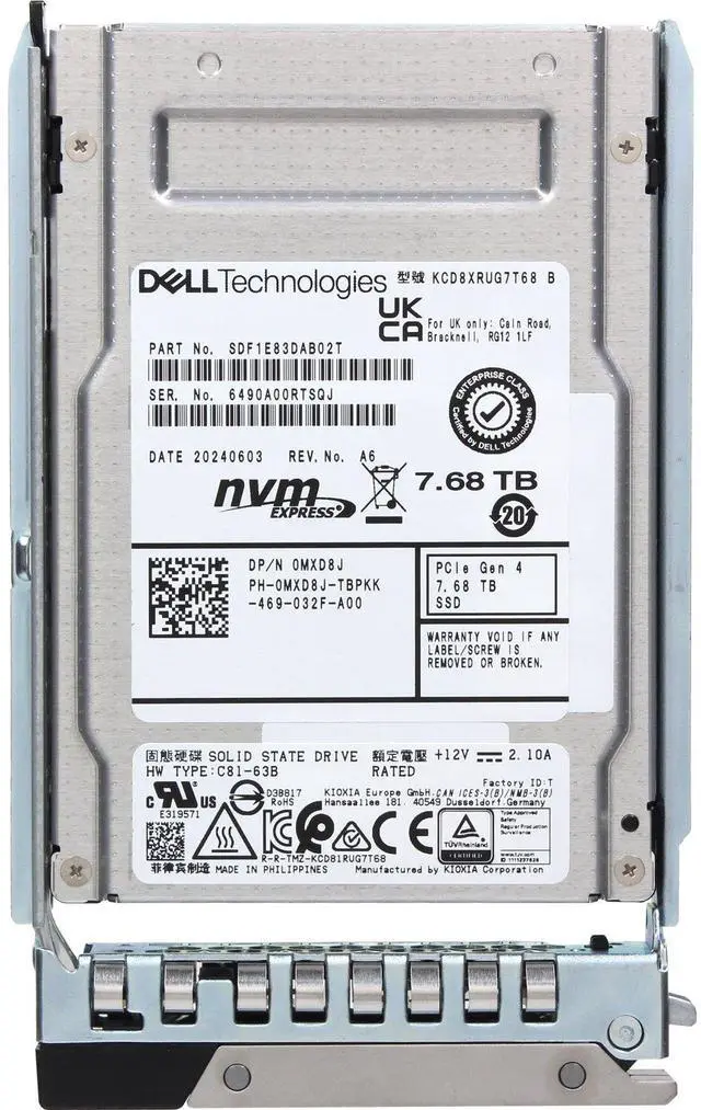 Dell 7.68TB Data Center NVMe Gen4 RI TLC 2.5 SSD CD8-R (MXD8J-OSTK)