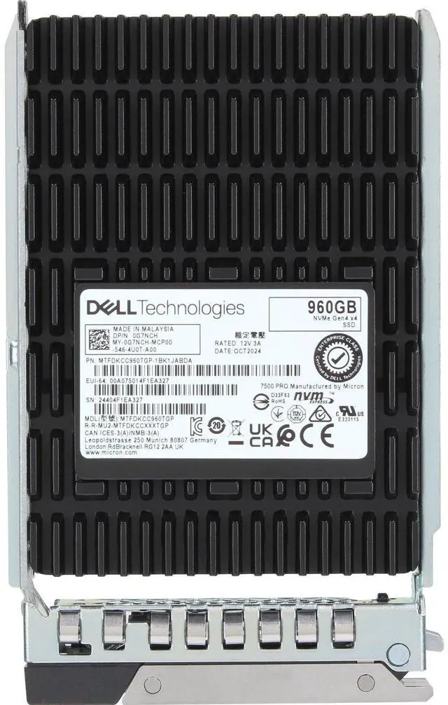 Up for sale is a Dell 960GB Data Center NVMe Gen4 RI TLC 2.5 SSD 7500 PRO (G7NCH). All components are tested and firmware is updated.