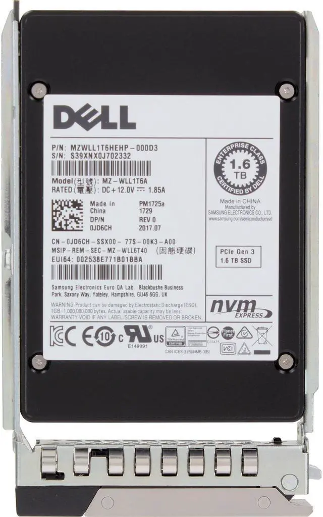 Up for sale is a Dell 1.6TB NVMe Gen3 MU TLC 2.5 SSD PM1725a CPO (JD6CH-CP2). All components are tested and firmware is updated. Dell 1.6TB NVMe Gen3 MU TLC 2.5 SSD PM1725a CPO (JD6CH-CP2-OSTK)