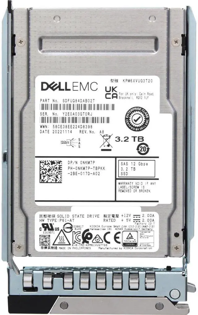 Up for sale is a Dell 3.2TB 12/24Gbps SAS MU TLC 2.5 SSD KPM6XVUG3T20 CPO (NKM7P-CP1). All components are tested and firmware is updated.