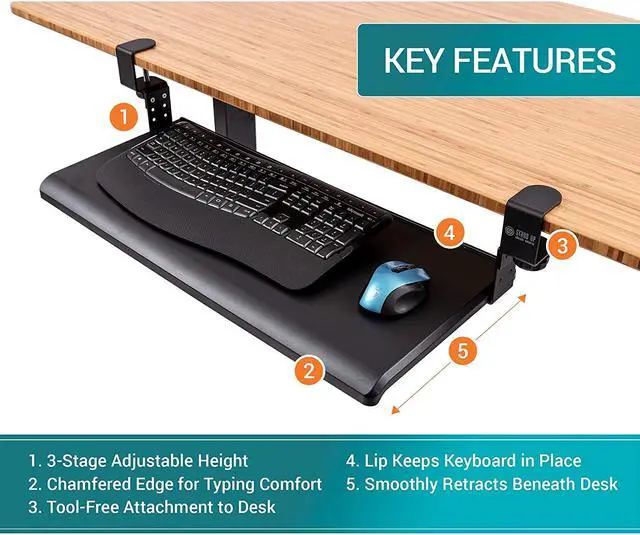 ERGONOMIC: This adjustable keyboard tray lets you fine tune the height so you can achieve your most comfortable typing position.