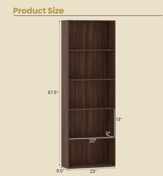 5-tier bookshelf with open design for easy access
