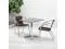 Create an enjoyable dining experience with this table set that will enhance your bistro, cafe, restaurant, hotel or home patio space. The designer style stainless steel table top features a smooth surface for keeping items level. The column and base are constructed of lightweight aluminum material. The chair is lightweight and easy to move and store. For easy storing and cleaning purposes these chairs stack up to 20 chairs high. This set was designed for all-weather use making it a great option for indoor and outdoor settings. For longevity, care should be taken to protect from long periods of wet weather. Whether you are just starting your business or upgrading your furniture this set will complete the look.