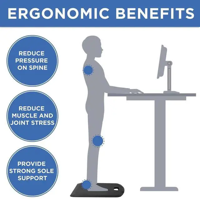 Standing for long periods of time on hard surfaces can put undue stress on your back, hips, knees, ankles and feet, causing not only significant pain but also muscle and joint fatigue. Say goodbye to tired joints or muscle pain from standing for long periods of time with Mount-It! Anti-Fatigue Mat. This premium quality mat promotes good posture and helps eliminate tension to give superior support in home kitchen, standing desk, garage, laundry, workstation or anywhere you need to stand for long.