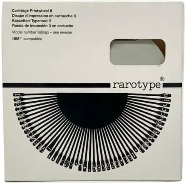 Rarotype compatible printwheels are high-quality replacements for the OEM (original) parts. This model is compatible in all IBM Wheelwriter typewriters. See images for a type sample. This printwheel is compatible with the following