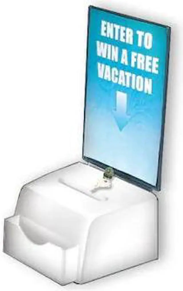 Azar's lottery boxes are great for fundraising, customer comments, and charitable donations. All lottery boxes include an attached sign holder for displaying pertinent company information and advertising material.