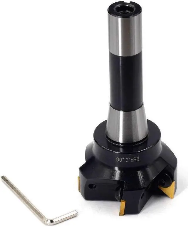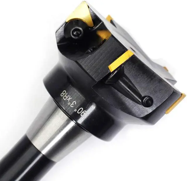 • Carbide Indexable End mills, R8 shank, 3"Cutting Diameter,Overall Length: 6"Positive rake 90°,right hand cutReduces cutting forces,Maximum rigidity