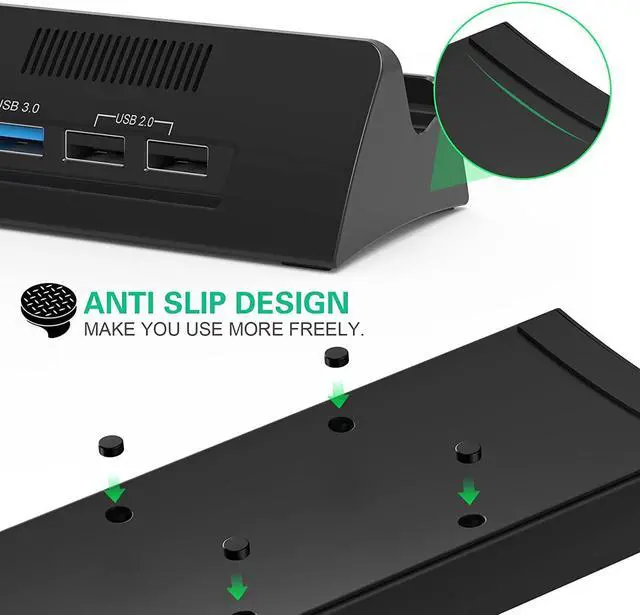 SCREEN PROTECTION AND NON-SLIPThe switch dock is designed to focus on the user experience and designed with a certain tilt angle to give you a better view in handheld mode. Due to this design, the switch screen is less likely to be scratched and damaged during use compared to using the original base. Free yourself from the heavy original switch dock. The non-slip pad on the bottom of the switch base also prevents your switch from being damaged due to improper placement.