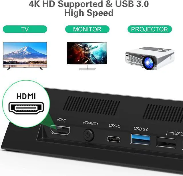 WITH HDMI CABLE and TYPE-C CABLEThe switch docking station for tv is designed with 1*HDMI video output port, 1*USB-C power port, 1*USB 3.0 port, 2*USB 2.0 ports, which can support 4K*2K HD video output, backward compatible with 1080p 720p, etc. 1 toggle button to switch between TV mode or console mode. 3 additional USB ports (1 USB 3.0. 2 USB 2.0 ) allow you to connect other Handle devices. Package includes HDMI cable and Type-c cable. Let you do not need to buy additional.