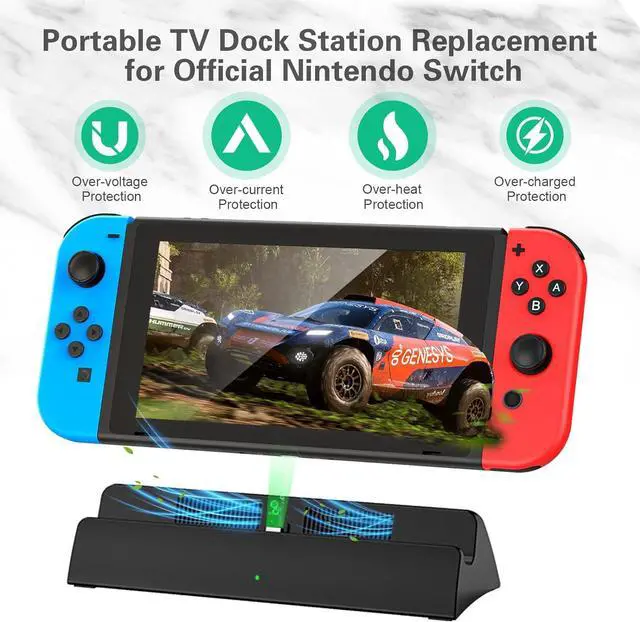 PORTABLE & LIGHTWEIGHTReplacement for official switch dock. Compact and lightweight, our switch dock is only 6.8 * 2.5 * 1.5 inch compared to the original official switch dock. small enough to fit in your pocket, you can easily take it anywhere. With your friends and family, play switch games on your hotel TV while traveling.