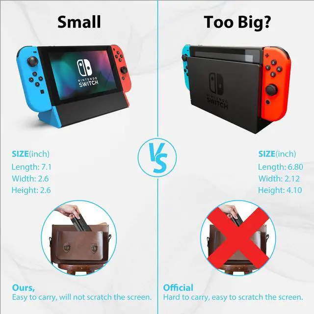 Portable and Compact: This dock is only 100g( 3.5 oz), 7.1 in * 2.6 in * 1.6 in size, which is much more portable and lightweight than official switch dock. Its work capability is the same as official standard, so its the perfect replacement station for Official Nintendo Switch Dock.