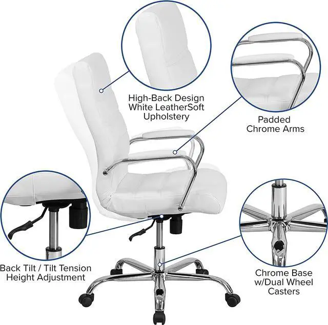 Make a bold statement in your workspace with this sleekly styled, executive office chair. Pairing a metal frame with the LeatherSoft upholstered back and seat creates a stunning visual contrast making this chair a focal point in your modern office.