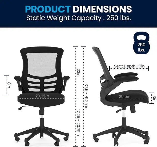 SAFETY & COMFORT: [_Our chair conforms to ANSI/BIFMA standard X 5.1 -17_] Ventilated curved mesh back with built-in lumbar support prevents overheating, 3" padded waterfall seat relieves pressure from the legs while providing cushioning for long workdays