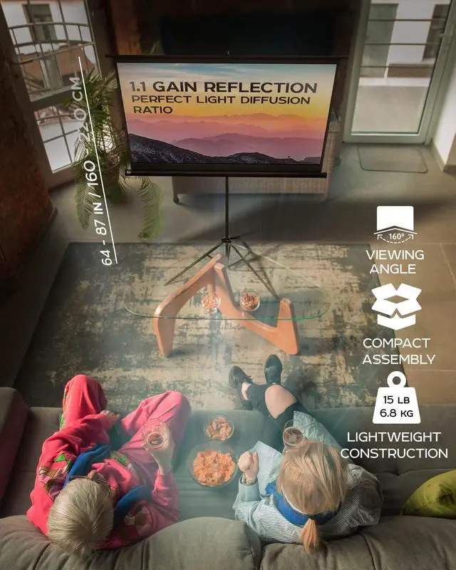 Lightweight projector screen is assembled by stable tripod support stand with wide legs which brings the reliability and safety for your comfort experience.