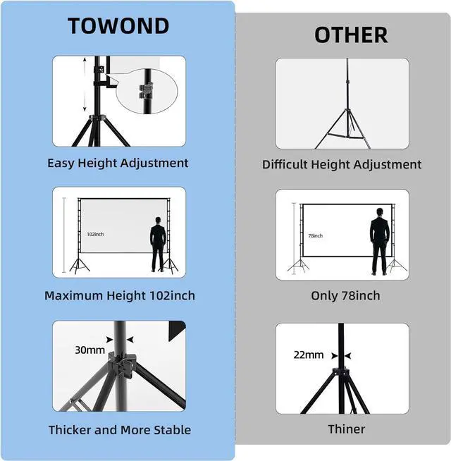 Anti-Wrinkle Design: We invited several people who have not installed our products to test. After reading the installation steps we provided, they quickly completed the installation and made an evaluation. 1: The installation process is simple and can be installed in a few minutes without any tools. 2: The design of the Velcro can tighten the screen so that the screen can be flat and smooth. 3: The tripod at the bottom can support the whole product stably on the ground.
