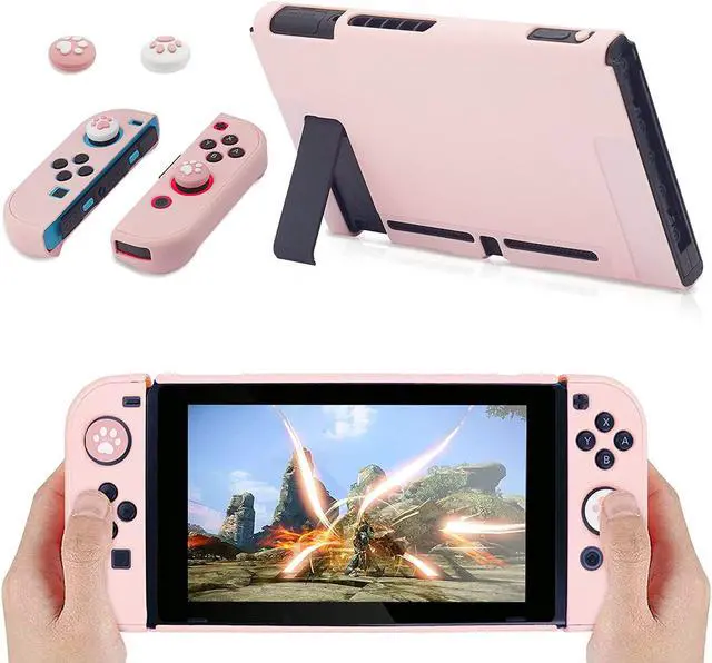 DOCK FRIENDLY PINK COVER SET - Protect your switch with lightweight, Smooth and impact resistant case! The Joystick cover is made of PC materials, which has an excellent smooth hand feel. It can fit the dock and won' t add unnecessary size or weight. Professional design fits perfectly with your Switch and all release buttons are very easy to get to.