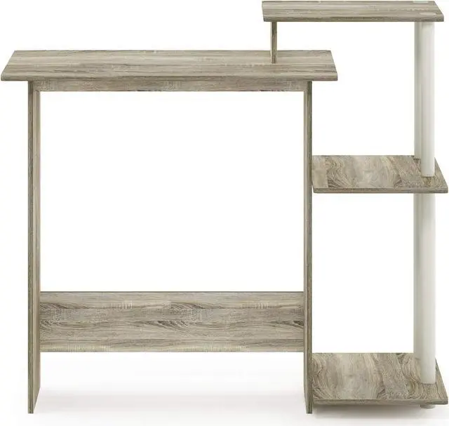 Furinno Efficient Home Laptop Notebook Computer Desk with Square Shelves, Sonoma Oak/White
