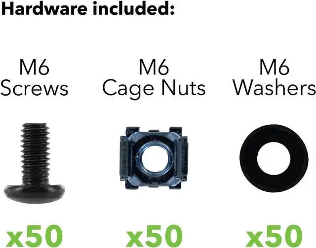 NavePoint M6 Cage Nuts and Screws for Server Shelves Cabinets - 50 Pk Rack Mount