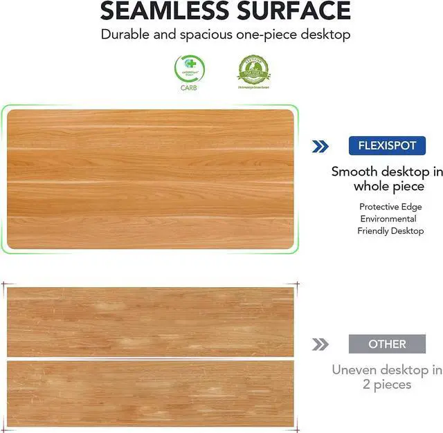 SLEEK & FUNCTIONAL DESIGN: Streamlined 40 x 24 eco-friendly whole-piece desktop easily holds your laptop, monitor, and more while taking up minimal floor space in your home or office. Please allow a slight 0 to 1-inch difference in desktop size due to manual measurement.