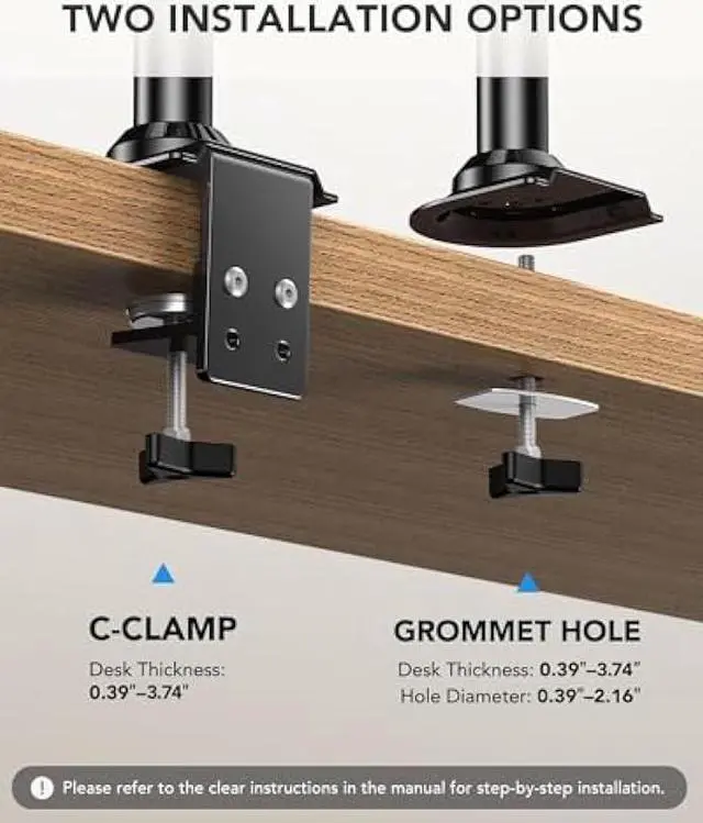 [Efficient space utilization] The c-clamp or grommet mounting base will save more than 80% desktop space compared to a vertical single monitor arm with heavy-duty base. You can place accessories such as a large keyboard and mouse pad without worrying about lack of desk space. At the same time, hidden cable management function prevents cables from being scattered and tangled, making your workspace neater and more orderly.