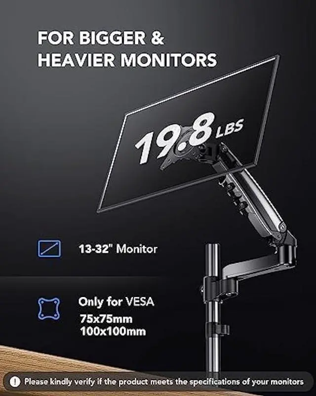 [Ergonomic] This HUANUO gas spring monitor mount is specially designed for ergonomics, aiming to help people work comfortably, and to help people have a better viewing experience. Fits VESA pattern 75x75 and 100x100