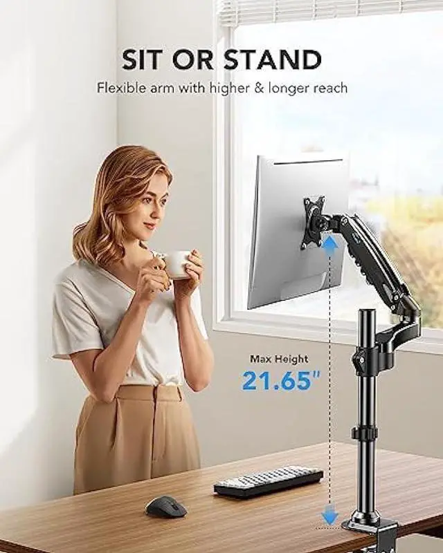 [Safer and Sturdier] At HUANUO, we focus on improving the strength and stability of our single monitor stand. The single desk monitor mount uses automotive-grade gas spring cores and has undergone 20, 000 motion tests, which means it can be used continuously for more than 5 years without issue.