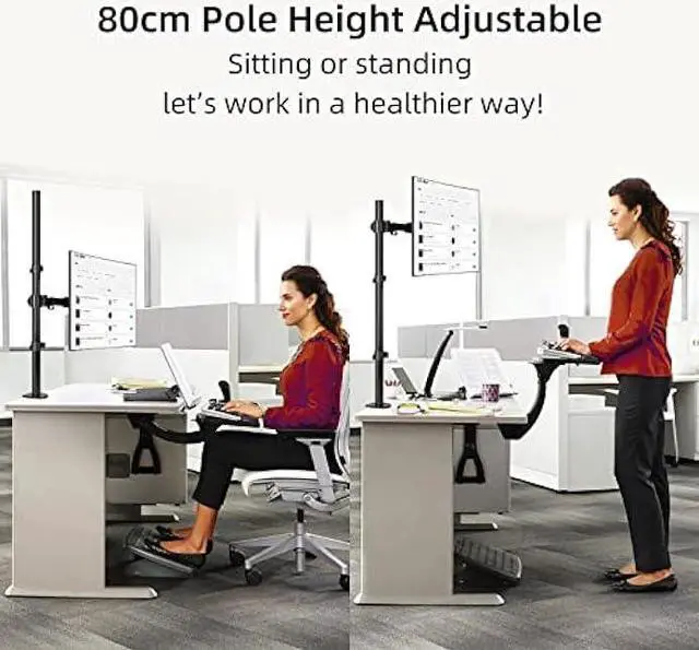 Fully aticulation - Rotate 360°, tilt ±90° up and down, swivel ±90° left and right, extra tall height adjustment along the center pole.