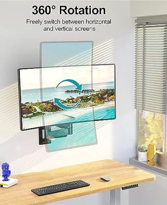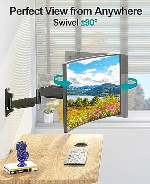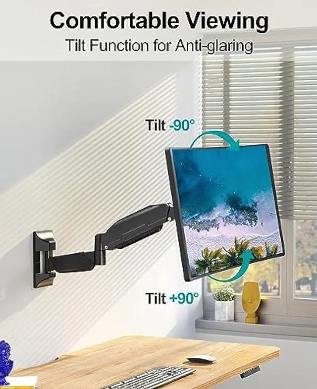 Full Motion Adjustable - Our monitor arm wall mount offers a variety of angles to adjust your monitor. It can tilt-90°/ +90° to reduce screen glaring and rotates 360° to switch portrait or landscape orientations. The swivel 180° adjustment function on horizontal orientation allows you to watch the screen from different seat positions. You'll have the flexibility to adjust your viewing angle as you like.