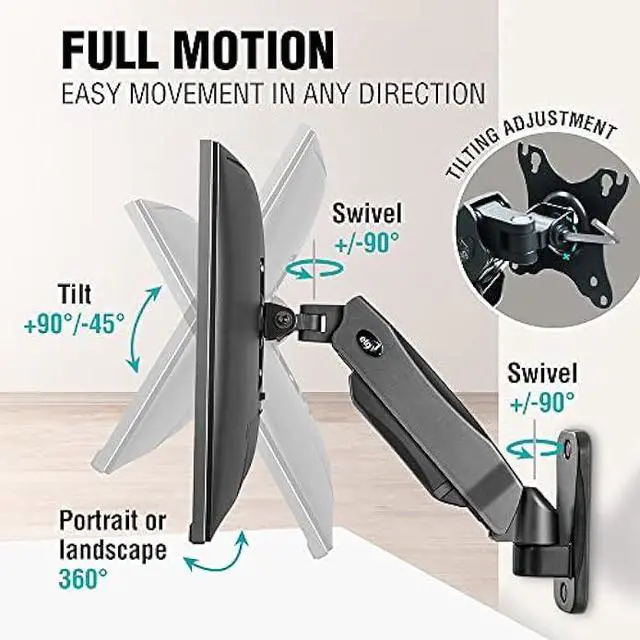 3-STEPS EASY TO ASSEMBLY IN LESS THAN 15 MINUTES: 1st, choose the best position on the wall, up to your needs. Preferably over a wood stud. 2nd, Hang up the monitor/TV at the bracket VESA plate and make sure of the stability. 3rd, Adjust the mount gas piston pressure for the best usage experience.