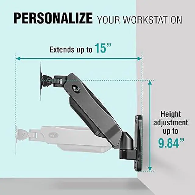 CUSTOMIZED COMBINATION TO ENSURE ERGONOMY AT WORK! This product has articulating and stable arms that allows easy movement in any direction, according to your needs. You can tilt the monitor -45°/+90°, combined with 360° landscape or portrait monitor rotation. The ultimate high level quality built-in gas spring provides an easy height adjustment range of 9.84 (250mm), extends up to 15 (380mm) and retracts the arms in the best way to personalize your room for more saving space, productivity enhancement and wellness.