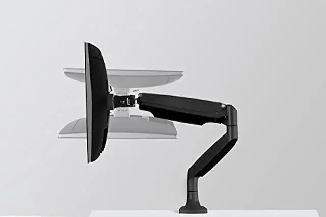 FEATURES: Gas spring monitor arm is heavy duty, counterbalanced and makes for effortless adjustments and comes with integrated, hide-away cable management. Aircraft grade aluminum alloy construction will stand the test of time.