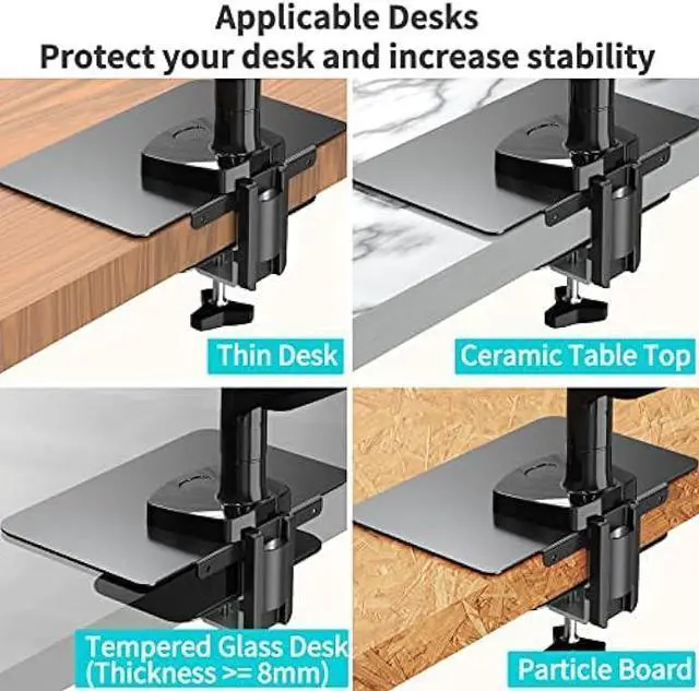 Desk protector - MOUNT PRO reinforcement plate for monitor mount reducing the pressure from the C clamp by spreading the weight over a larger surface area, giving extra support to your desktop. Especially for fragile desktop, such as thin desk, tempered glass, expensive desk with soft decorations on desktop.